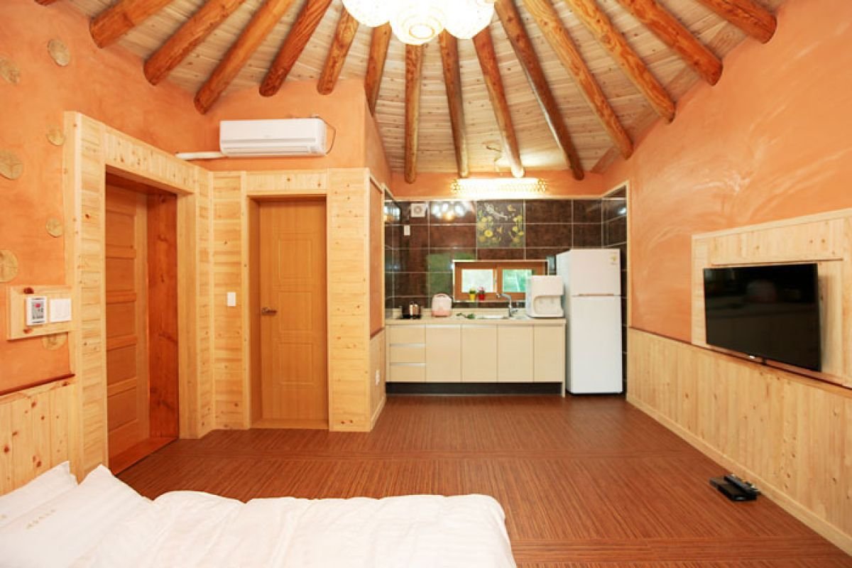 거실겸 주방+욕실의 원룸형 원형객실